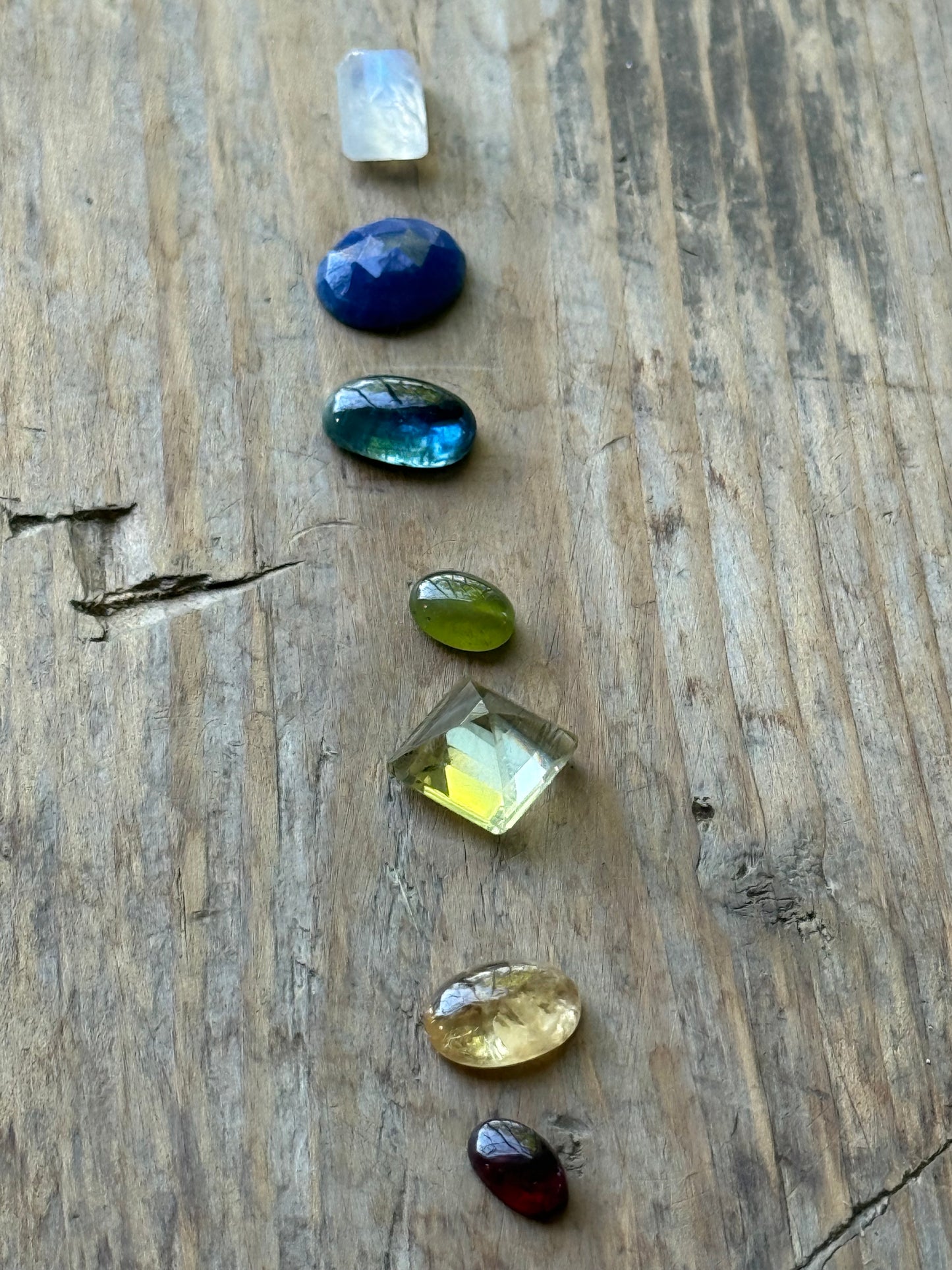 Add Gemstone Collection 592: Lapis Lazuli, Moonstone, Lemon Quartz, Kyanite, Green Kyanite, Imperial Topaz, Rainbow Tourmaline - 21 CT to the cart
