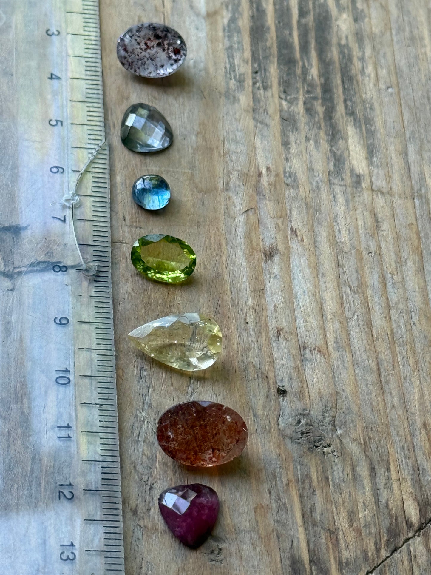 Add Gemstone Collection 598: Honey Quartz, Kyanite, Moonstone, Pink Amethyst, Hesonite, Peridot, Red Inclusion Quartz - 95 CT to the cart