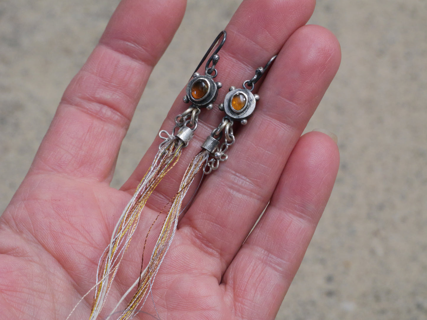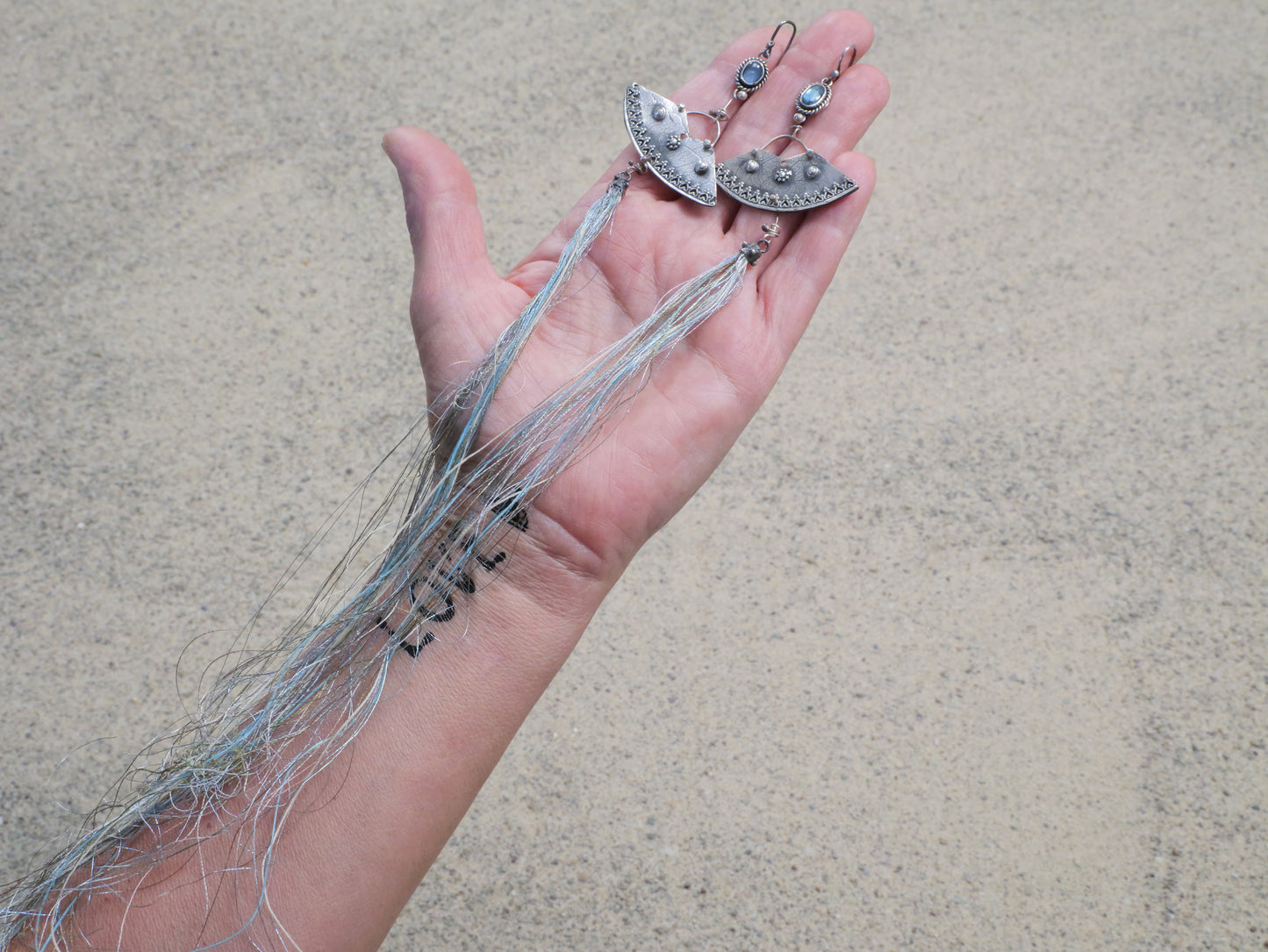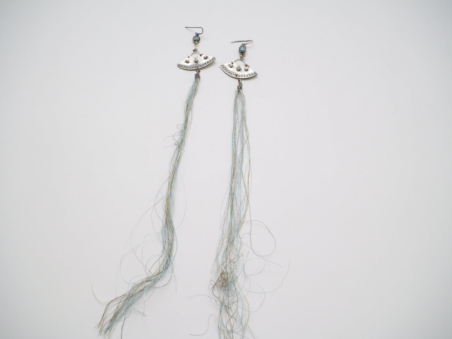 Suspended in air, earrings become the rhythm of your thoughts — small sculptures that move with your words, framing your face like smoke and prayer.