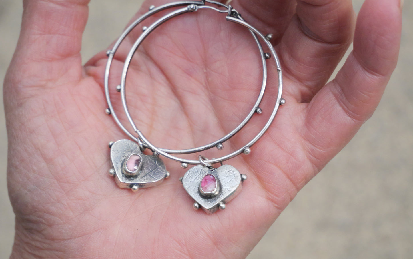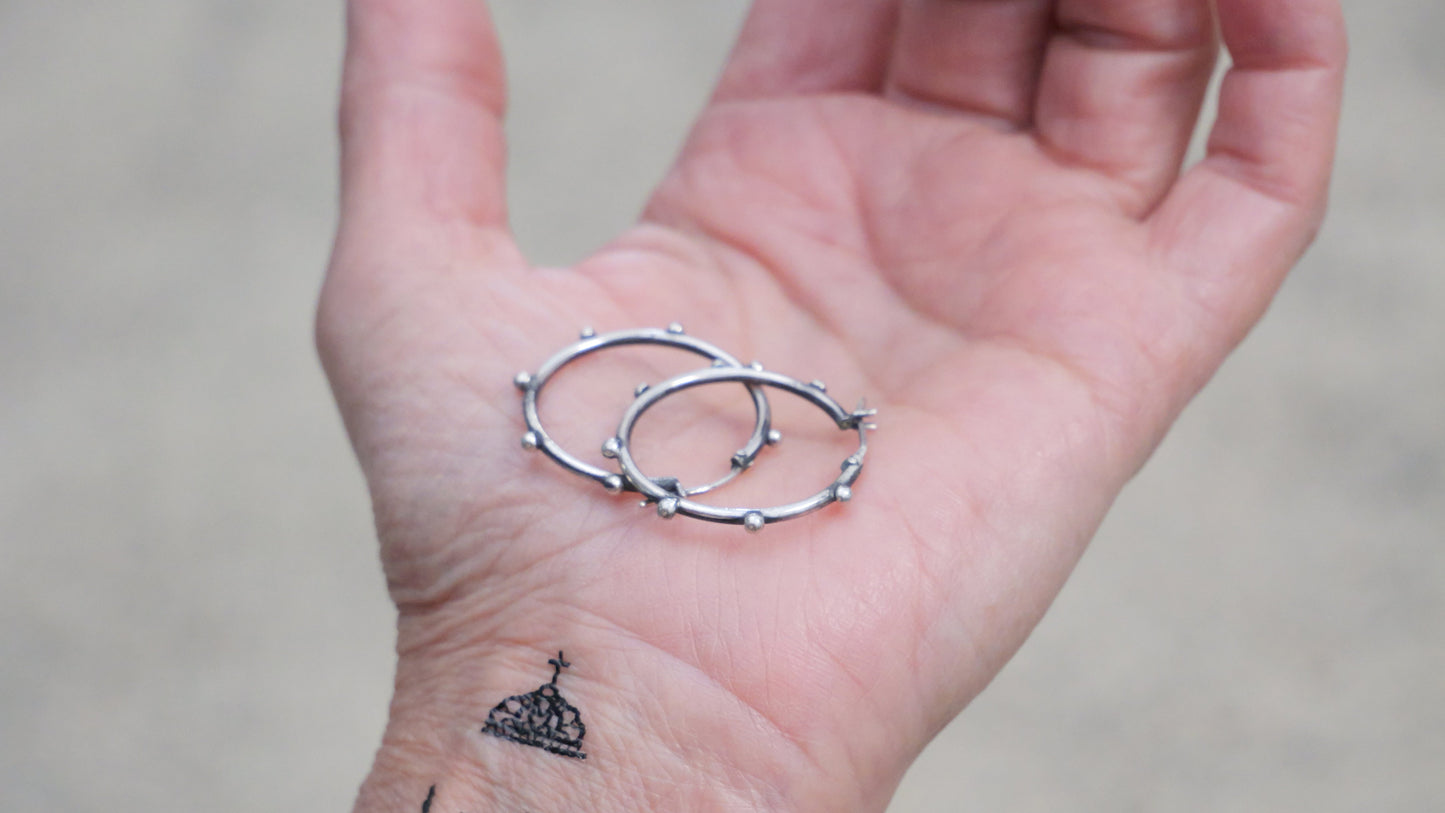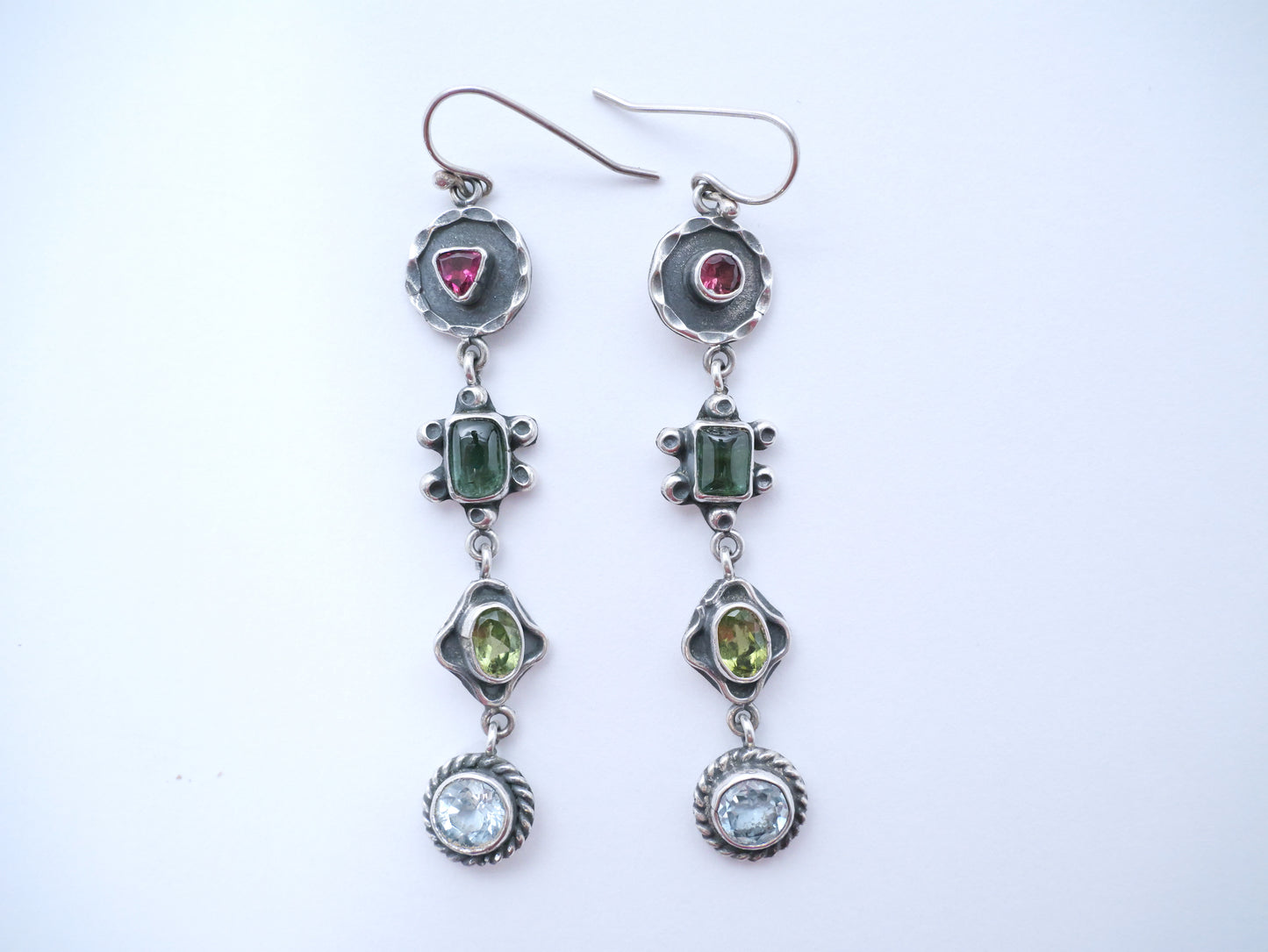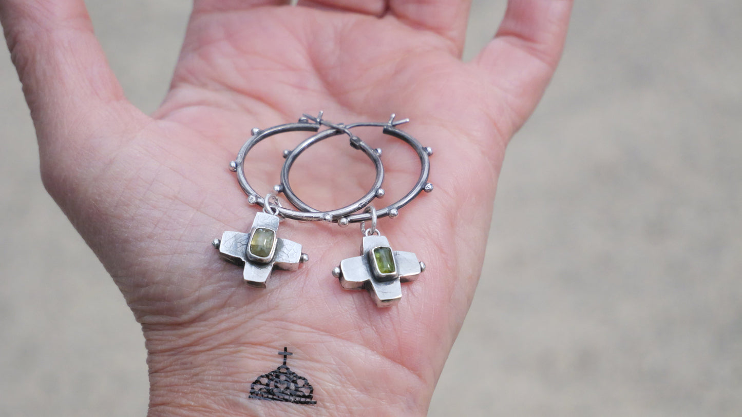 Each pair carries charms, gemstones, and symbolic forms — crosses for balance, circles for endless life, triangles for movement and power.