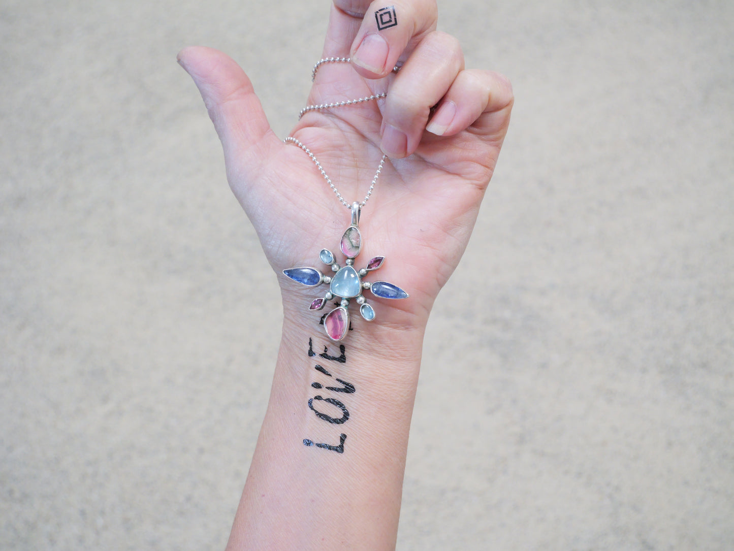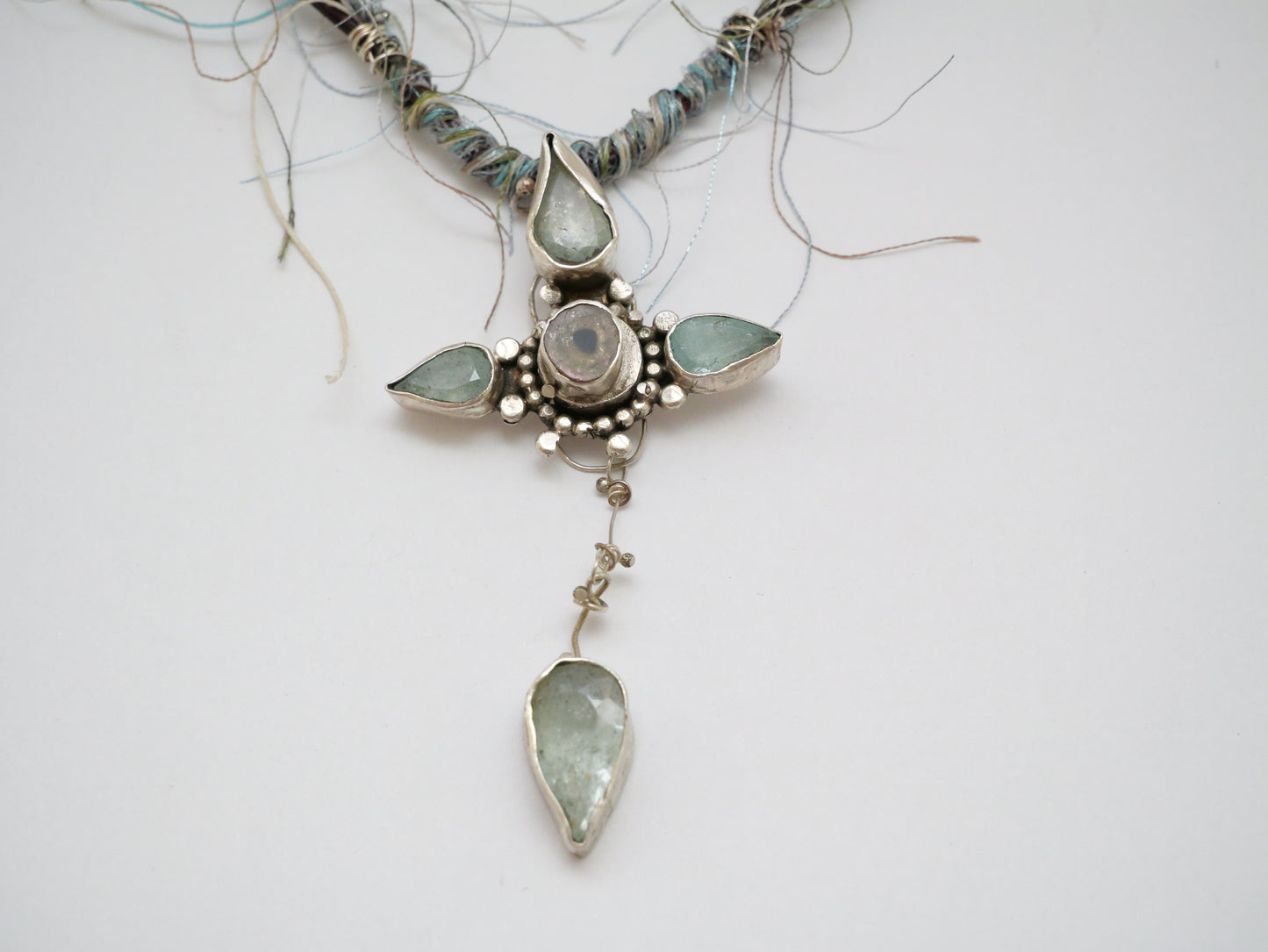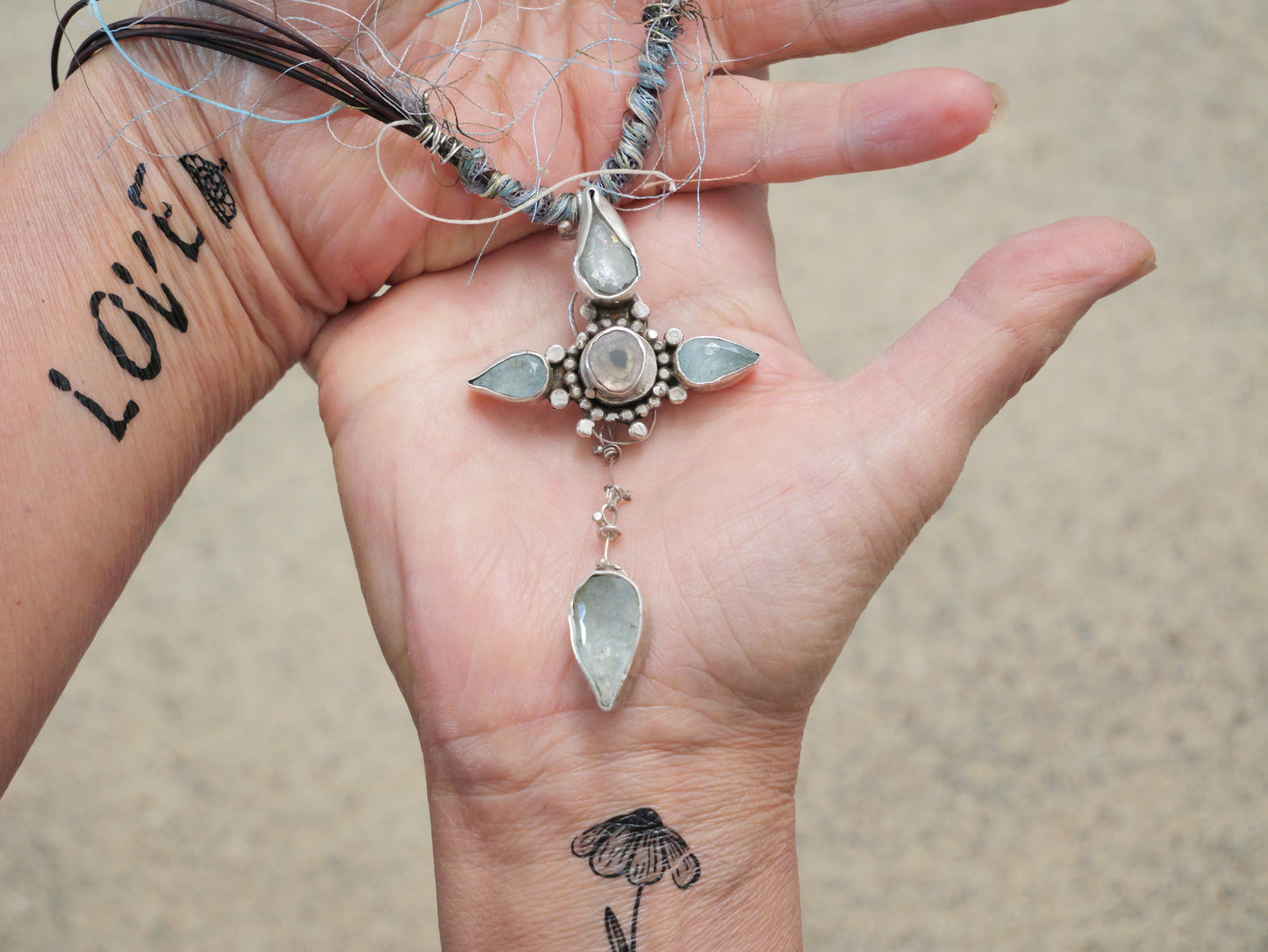 Each Solii+Mi necklace is built as an amulet of connection — layers of silver, thread, and sacred