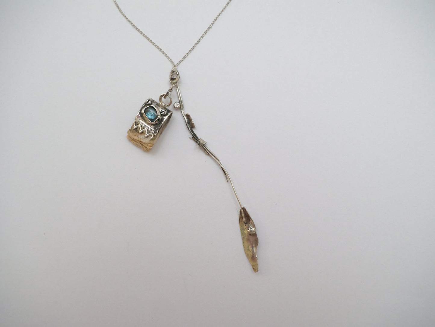 NECKLACE 24: STERLING SILVER CHAIN WITH RAINBOW TOURMALINE AND ADORNMENTS CHARMS