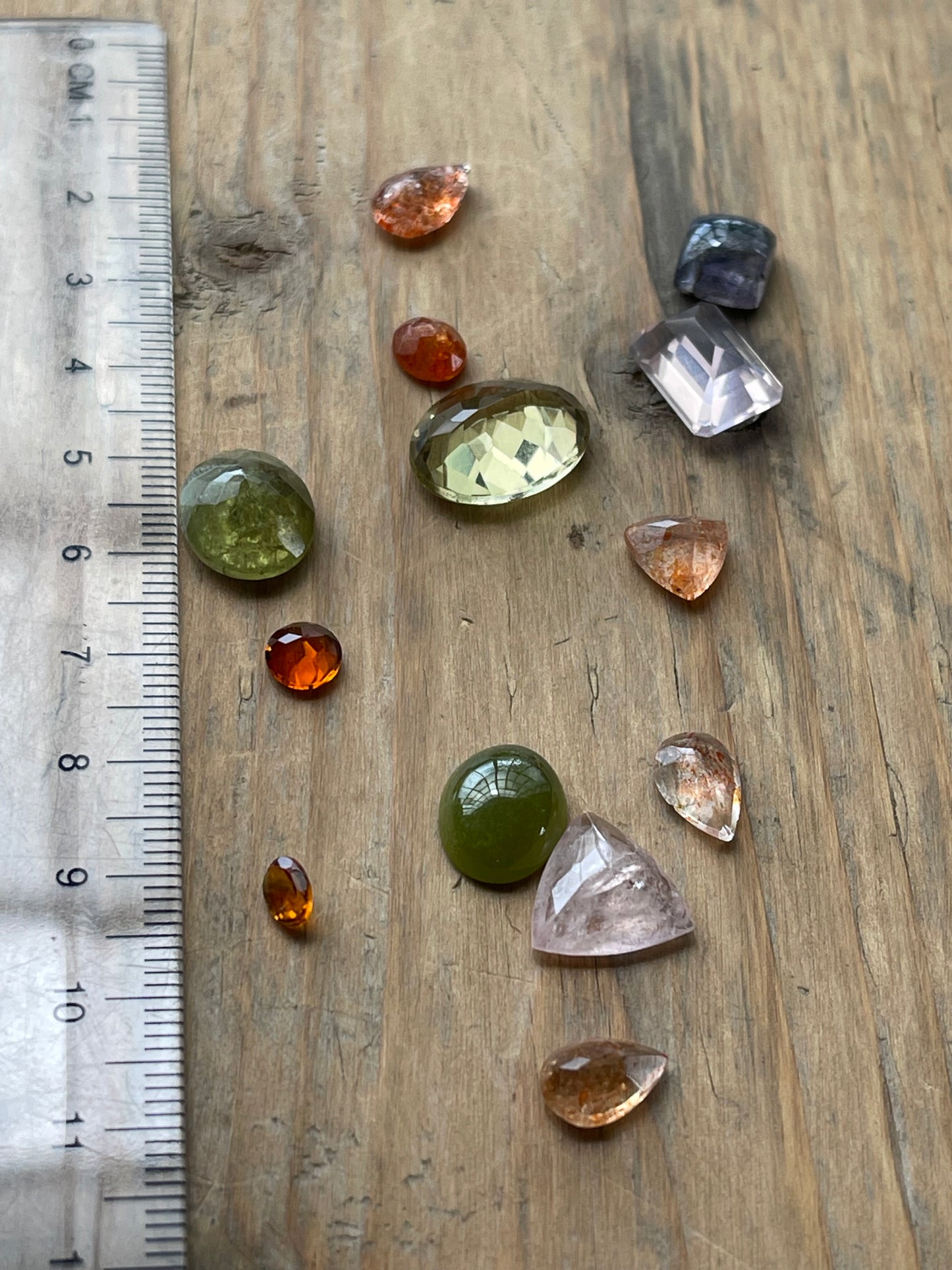 Add Gemstone Collection 346: Scapolite, Garnet Grossular, Brandy Citrine, Rose Quartz, Morganite, Iolite, Vesuvianite, Sunstone -43CT to the cart