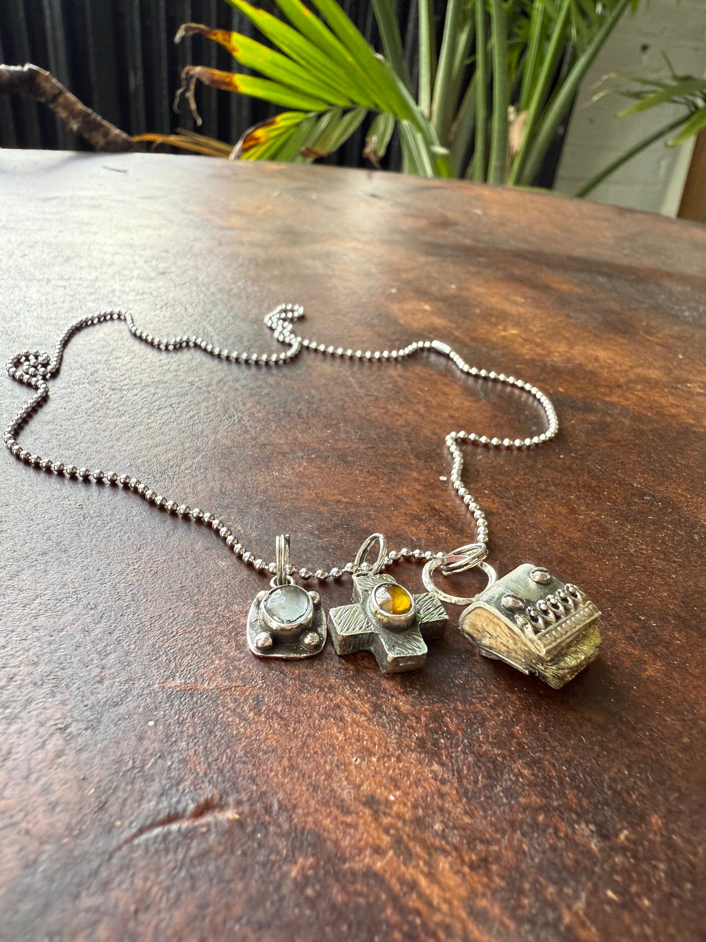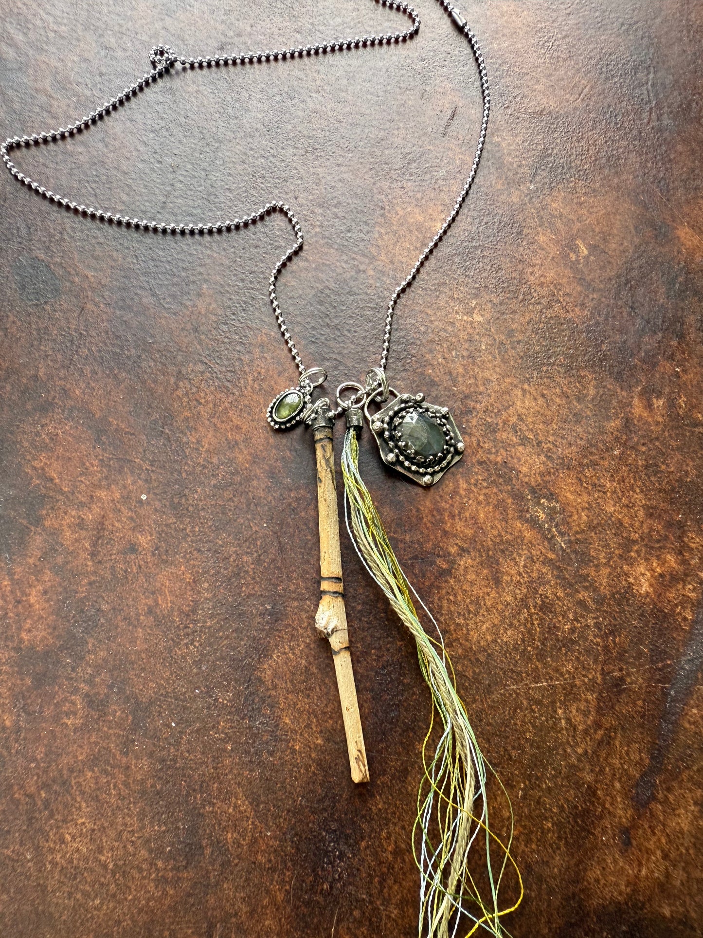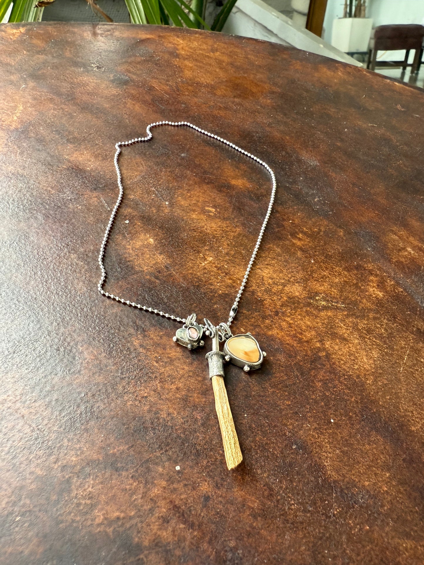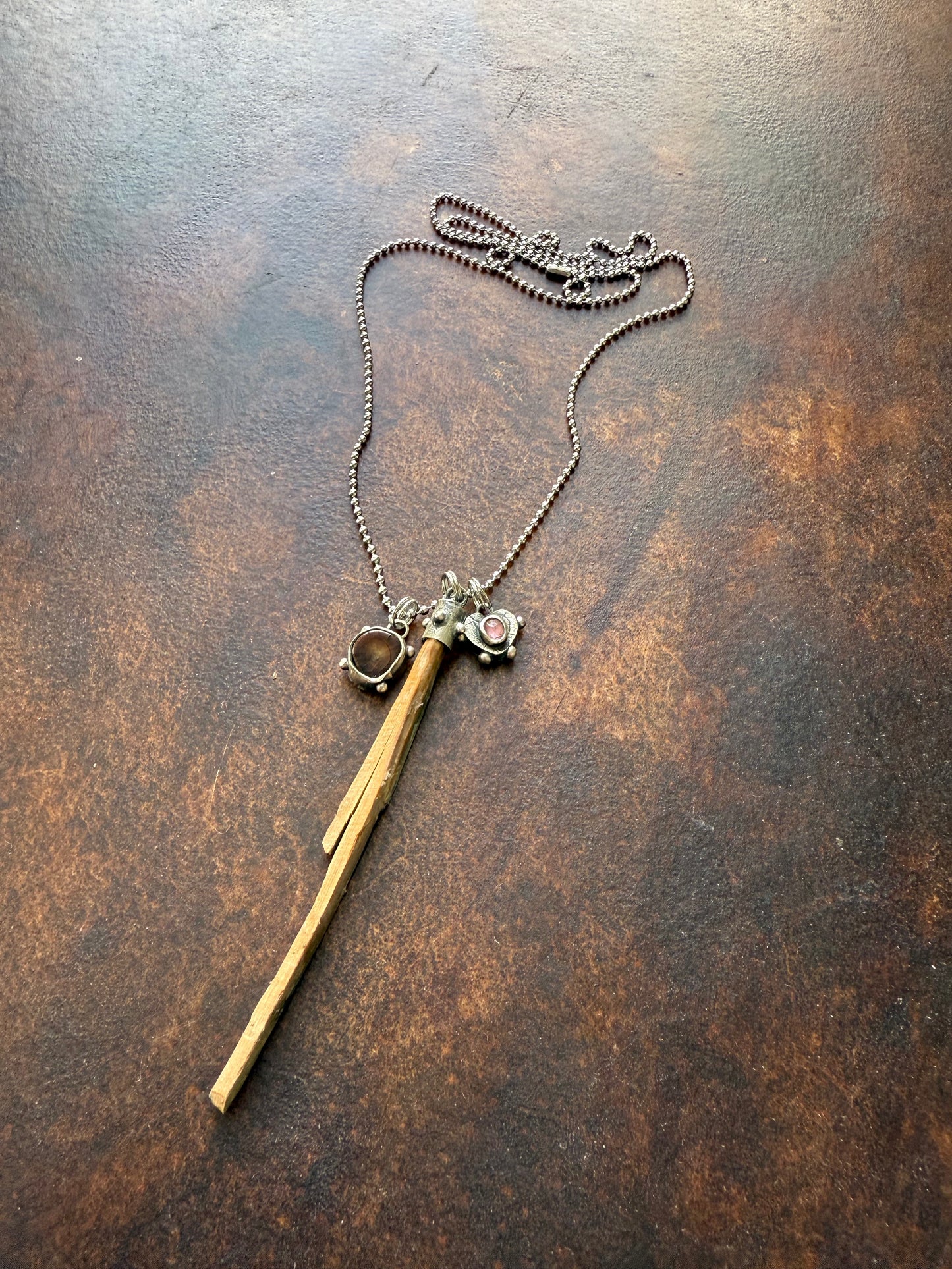 Add NECKLACE 59: STAINLESS STEEL CHAIN WITH FIBERS,WOOD, STERLING SILVER HOLLOW FORM - RAINBOW TOURMALINE, HESSONITE to the cart