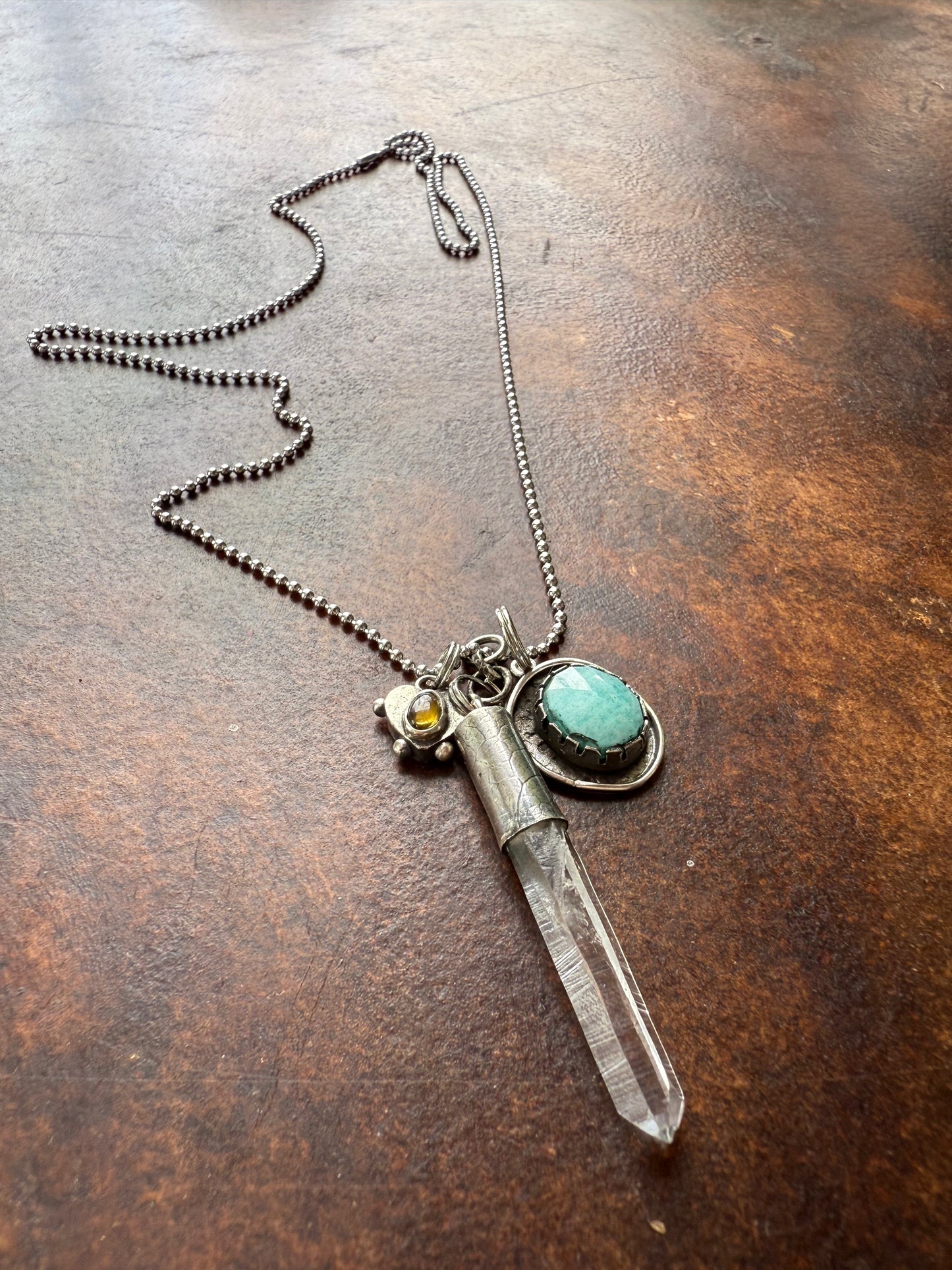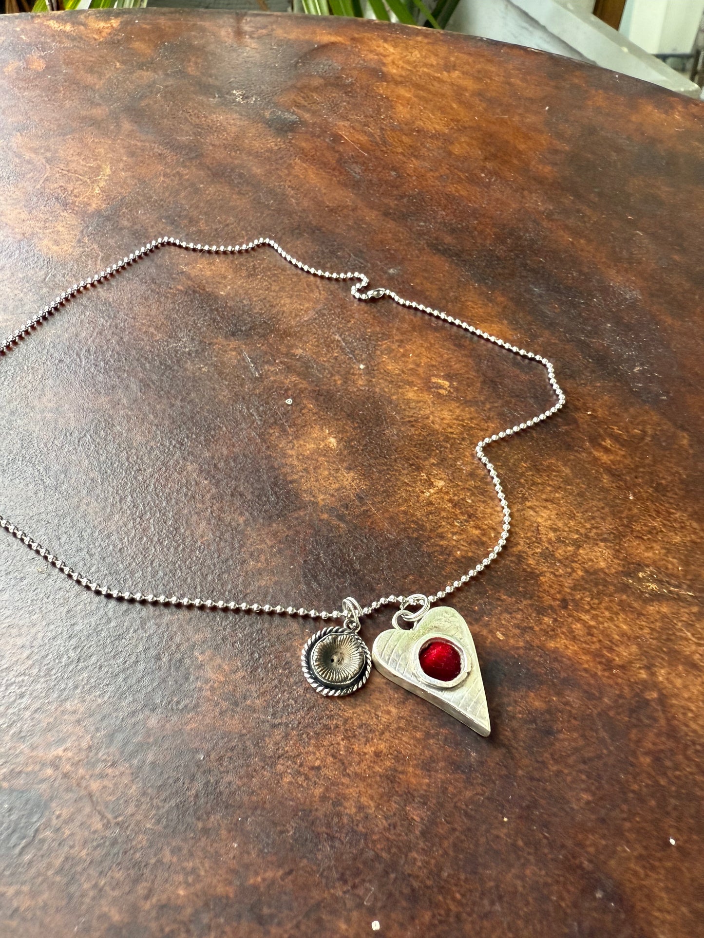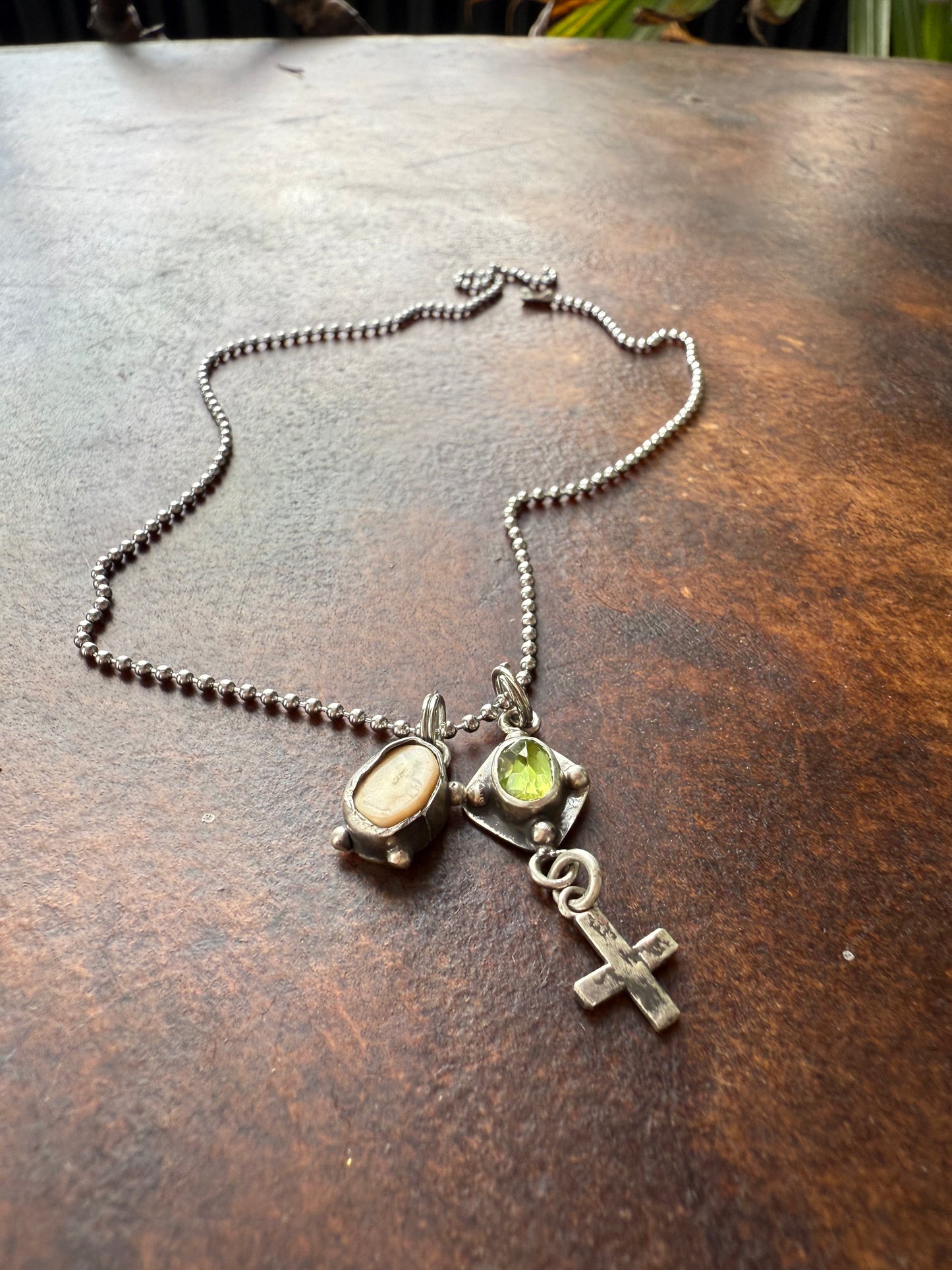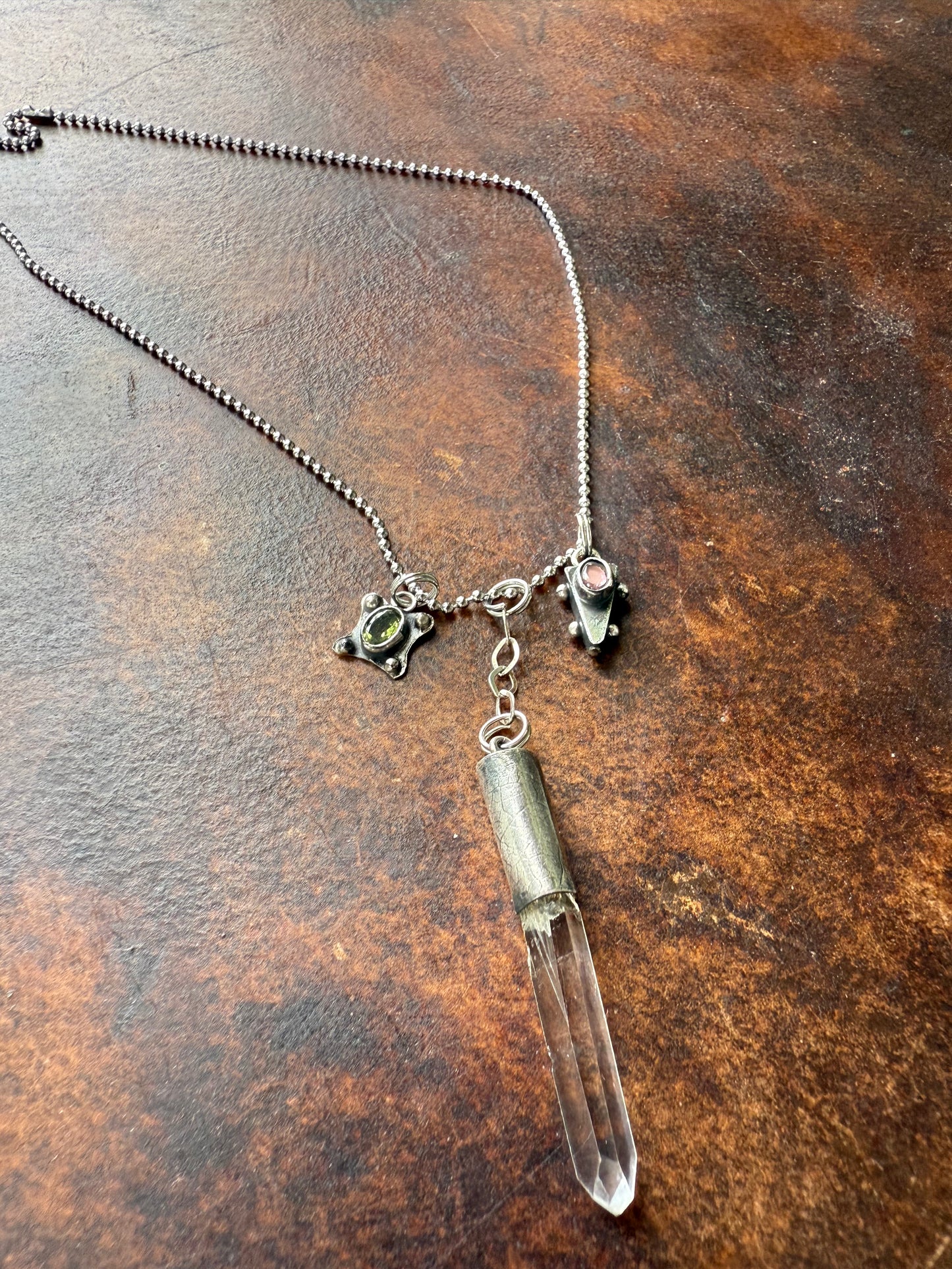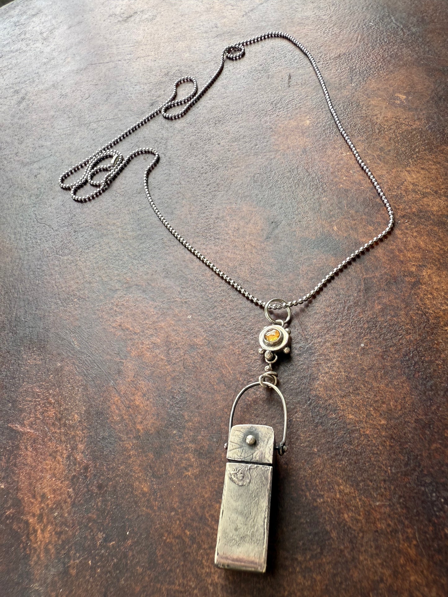 Add NECKLACE 59: STAINLESS STEEL CHAIN WITH FIBERS,WOOD, STERLING SILVER HOLLOW FORM - RAINBOW TOURMALINE, HESSONITE to the cart