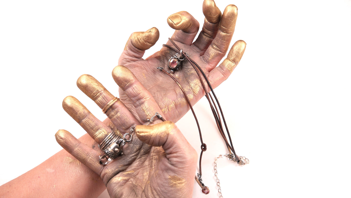- Avoiding water, lotions, and perfumes when wearing your pieces.